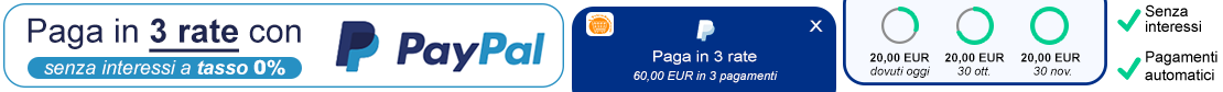 Paga con Carte, Paypal, Postepay e in 3 Rate