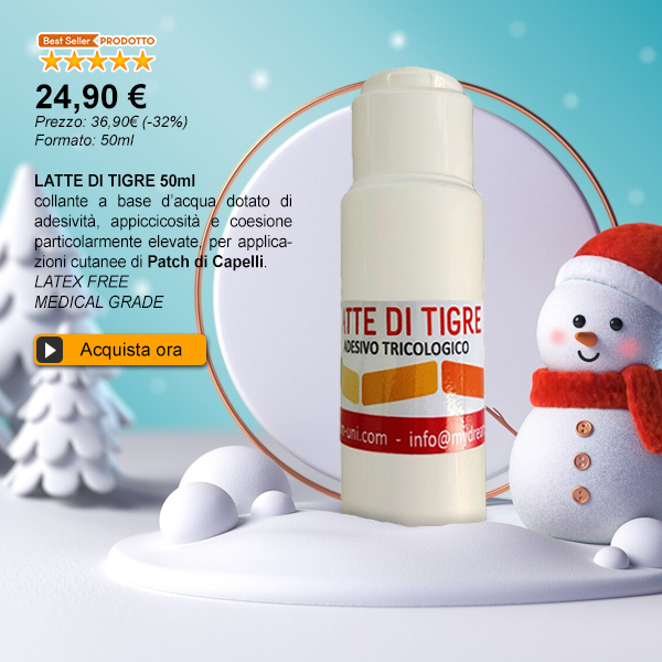 In questo reparto sono disponibili i nostri prodotti per la manutenzione di protesi di capelli, impianti capillari, parrucche, utili all’ancoraggio delle stesse a mezzo collante medicale, biadesivi anallergici. Sono presenti anche prodotti per la rimozione e detergenti come remover, solvente, disinfettanti, protettivi per capelli, e scollanti per eliminare i residui di colla dalle protesi e dalla cute. All'interno del catalogo è possibile trovare prodotti per la detersione e la rigenerazione delle protesi in capelli naturali, alcuni prodotti come shampoo, maschere siliconiche, trattamenti per impianti capillari, sono utilizzabili anche su protesi o parrucche in capelli sintetici (fibra).