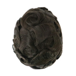 • Impianto Tricologico in poliuretano con capelli ondulati indiani e front a onde, base da 0,12 con capello annodato