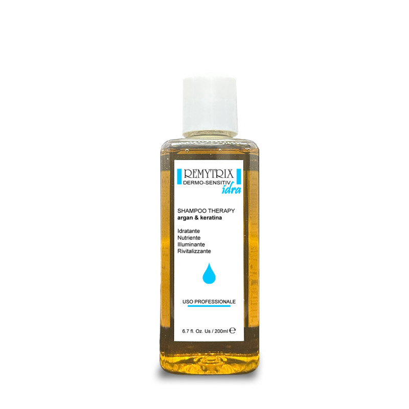 Lo SHAMPOO REMYTRIX IDRA per i capelli protesici secchi e sfibrati a base di Olio di Argan Biologico e Keratina utile come trattamento per remineralizzare i capelli secchi e sfibrati.
